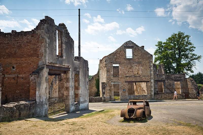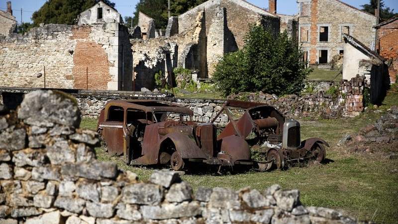 حيث قامت مجموعة جنود من ألمانيا النازية باحتلال القرية واعتقال وقتل 642 من سكان القرية، إذ تم حرق معظم منازلهم على الأرض، كما تم أخذ الرجال إلى الحظائر وإطلاق النار عليهم، وتم حبس النساء والأطفال في كنيسة وقتلوا بالمتفجرات والقنابل الحارقة، وكان من بين الضحايا 207 أطفال.