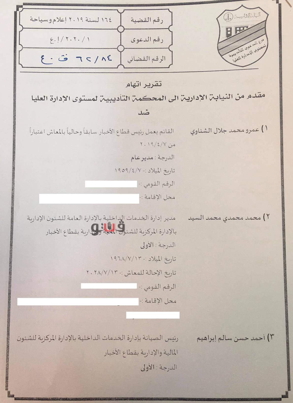 كشف تقرير الاتهام أن المحالين الأربعة لم يؤدوا العمل المنوط بهم بدقة وخالفوا أحكام القوانين والقرارات التي تتعلق بأداء واجبات وظيفته وكذا القواعد والأحكام المالية والإدارية المنصوص عليها بلوائح الاتحاد وغيرها من القوانين واللوائح وإهمالهم وتقصيرهم الذى ترتب عليه ضياع حق من الحقوق المالية لإحدى الهيئات الخاضعة لرقابة الجهاز المركزي للمحاسبات.