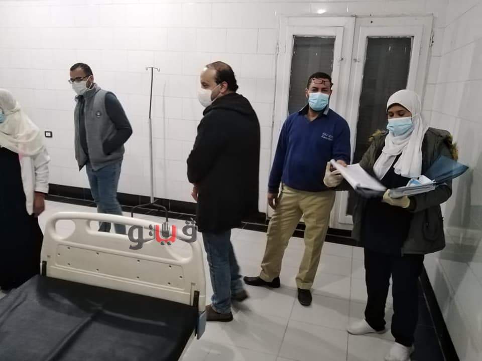 توجه فريق من مديرية الصحة بمحافظة قنا، إلي مستشفى الوقف المركزي لمتابعة حالات مصابي فيروس كورونا، والاطمئنان على سير العمل بها.