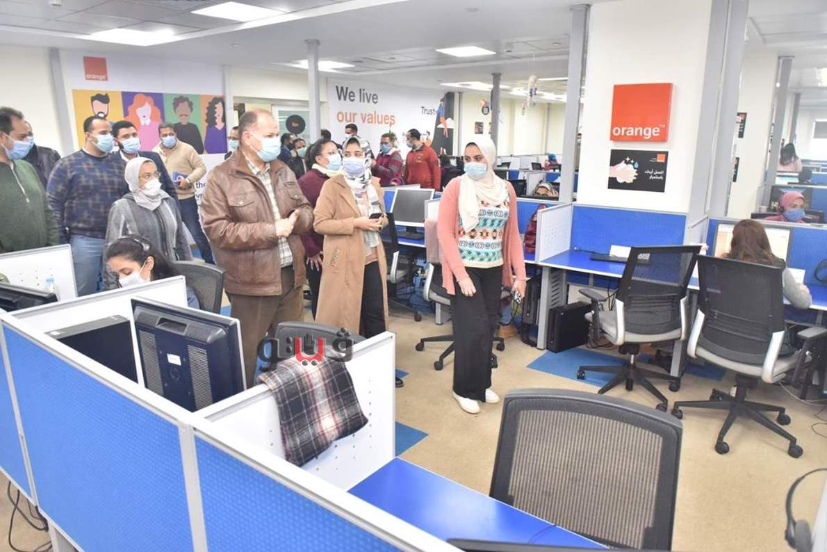 كما استكمل المحافظ جولته بالمنطقة التكنولوجية بتفقد مراكز خدمة العملاء لبعض شركات الاتصالات والتقى ببعض العاملين والمشرفين على تلك المراكز من الشباب واستمع إلى طبيعة عملهم مشددًا على ضرورة تطبيق الاجراءات الاحترازية والوقائية لمواجهة فيروس كورونا والتأكيد على ضرورة ارتداء الكمامات الطبية والالتزام ببوابات التعقيم والتطهير المستمر لتلك المراكز ومنع التجمعات حفاظاً على سلامتهم.