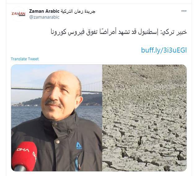 وذكر جوفين أوزدمير أنه لا يريد أن يفكر في أسوأ سيناريو متوقع، إلا أنه إذا أصيبت أسطنبول بالجفاف لمدة 15 يومًا، فهذا يعني زيادة الأمراض المعدية، والتي ستتفوق حتى على فيروس كورونا الذي يحاربه العالم كله الآن.