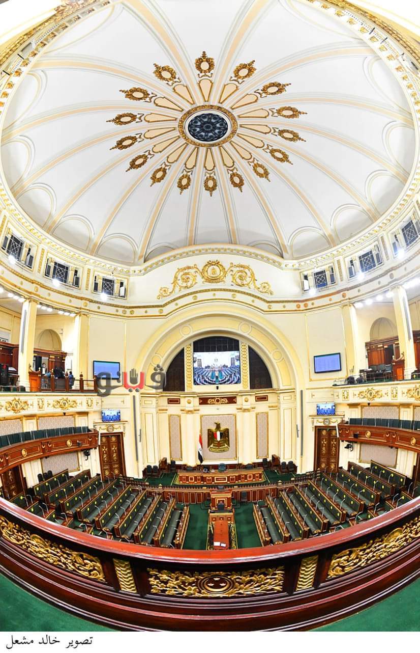 وجرى الانتهاء من تزيين قاعة المجلس الرئيسية والقبة المزخرفة بها وقاعة البهو الفرعوني والقاعات الأخرى المجاورة للقاعة الرئيسية حيث سيتم استخدامها غدا في استقبال النواب الجدد.