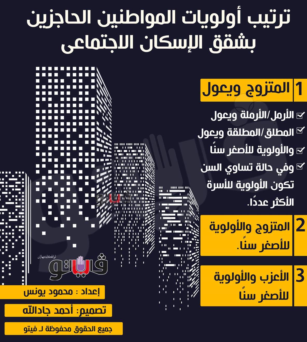 ترتيب أولويات المواطنين الحاجزين بشقق الإسكان الاجتماعى| إنفوجراف الثلاثاء 12/يناير/2021 - 03:31 م 1/12/2021 3:31:12 PM ارشيفية محمود يونس شارك طباعة 18 حجم الخط شارك طباعة وزارة الاسكان شقق الإسكان الاجتماعى شقق وزارة الاسكان صندوق الاسكان الاجتماعي سكن لكل المصريين عقارات فيتو ترتيب اولويات شقق الاسكان