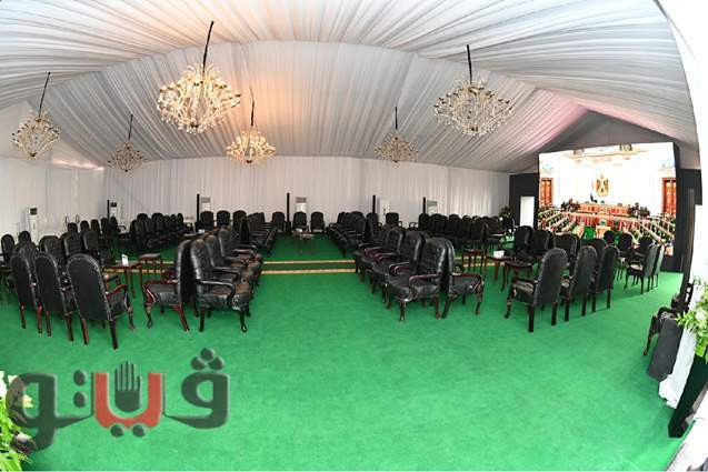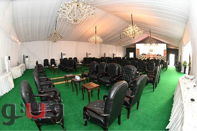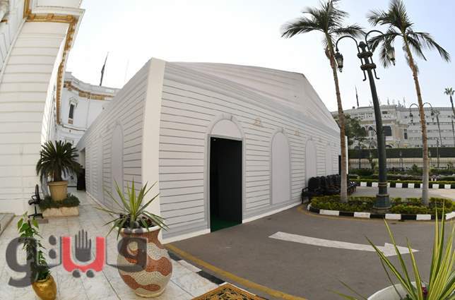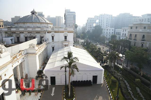 وجهزت الأمانة العامة لمجلس النواب، خيمة أمام مدخل رئيس المجلس المواجه لمجلس الوزراء، والذي من المقرر أن يكون مكانا لانتظار نواب القائمة والمعينين، والذين سيدخلوان لحلف اليمين الدستورية في تمام الساعة الثانية ظهرا.