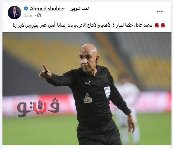 يذكر أن هذه المرة الثانية في غضون شهر تقريبا التى يتعرض فيها الحكم الدولي أمين عمر للإصابة بفيروس كورونا، ويستبعد من إدارة المباريات.