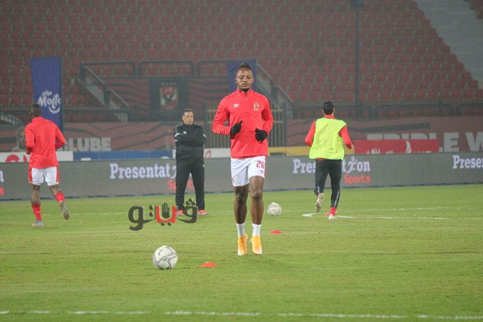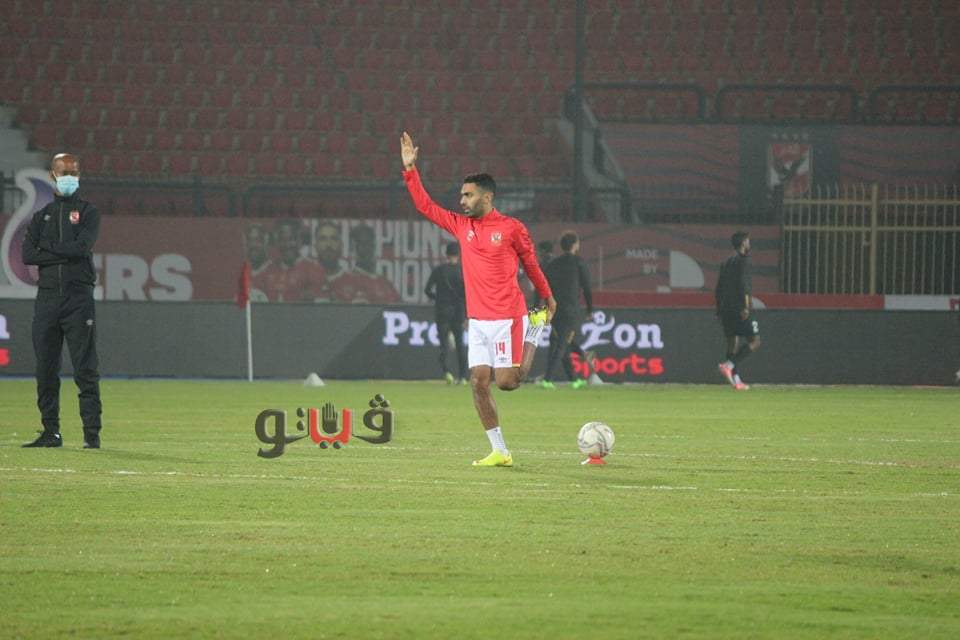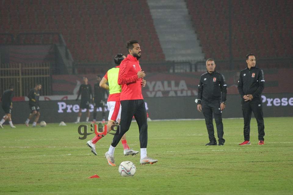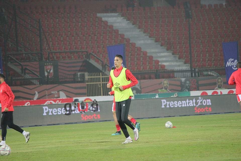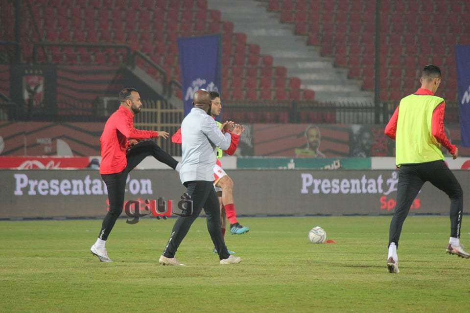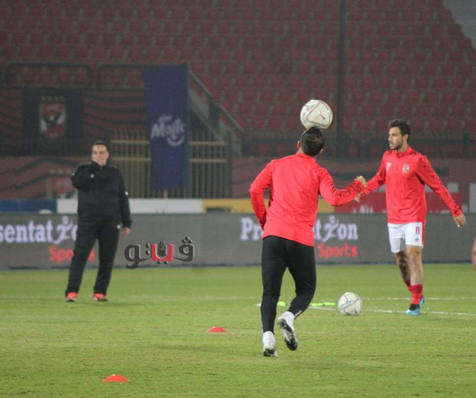 لاعبو الأهلي يجرون عمليات الإحماء قبل مواجهة الإنتاج الحربي | صور