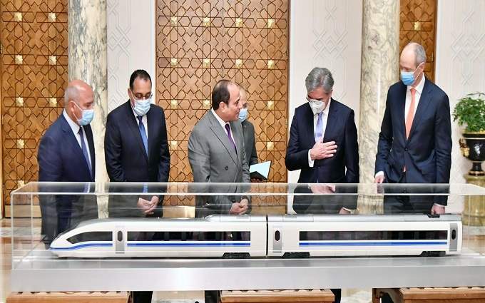 وقال السفير بسام راضي المتحدث الرسمي باسم رئاسة الجمهورية بأن الاجتماع تناول استعراض الاتفاق النهائي لقيام شركة "سيمنز" العالمية بإنشاء منظومة متكاملة للقطار الكهربائي السريع في مصر بإجمالي أطوال حوالي ١٠٠٠ كم على مستوى الجمهورية، وبتكلفة إجمالية قدرها ٣٦٠ مليار جنيه، وذلك بدءاً بالتنفيذ الفوري لمشروع الخط الذي سيربط مدينة العين السخنة بمدينة العلمين الجديدة مروراً بالعاصمة الإدارية الجديدة وعدد ١٥ محطة، بطول ٤٦٠ كم، حيث يستغرق تنفيذه مدة زمنية قدرها سنتين.
