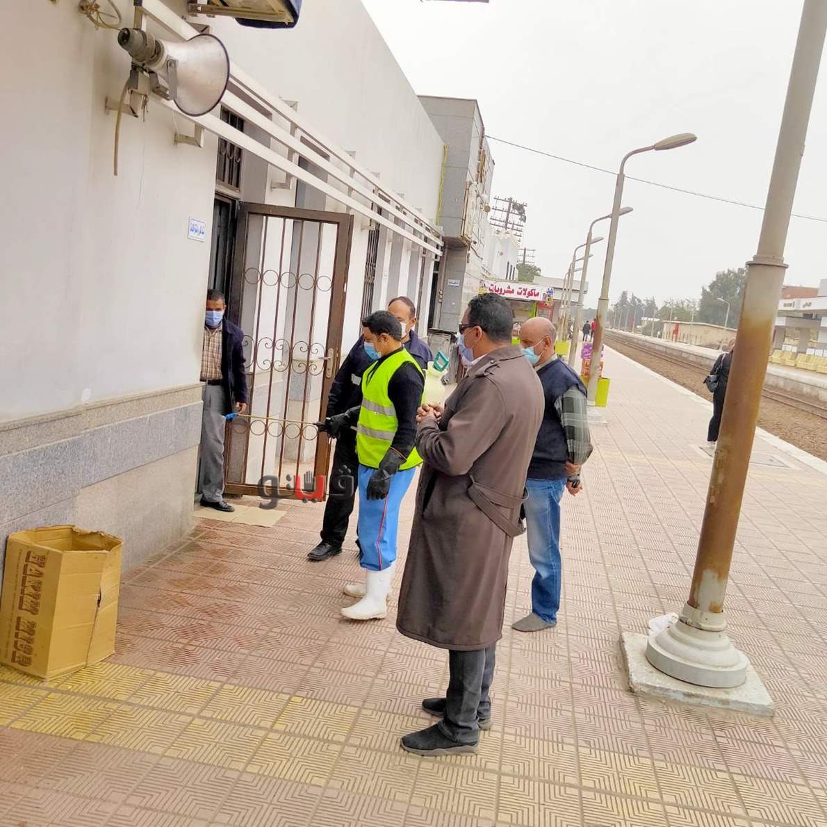 ومن جانبه قام المحاسب أحمد الليثي مدير إدارة المتابعة الميدانية والتفتيش برئاسة مركز ومدينة التل الكبير بمتابعة ما يتم من تطبيق الاجراءات الاحترازية داخل محطة قطار التل الكبير .