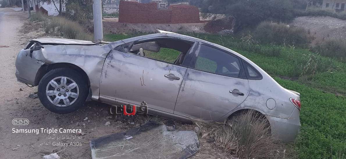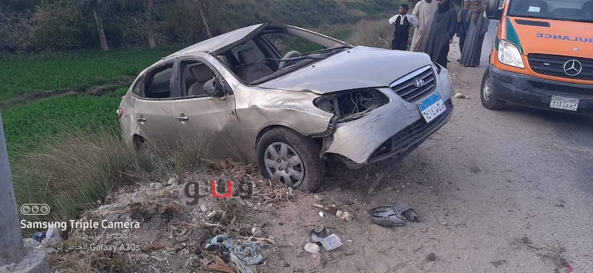 إصابة شخصين بحادث انقلاب سيارة في قنا | صور