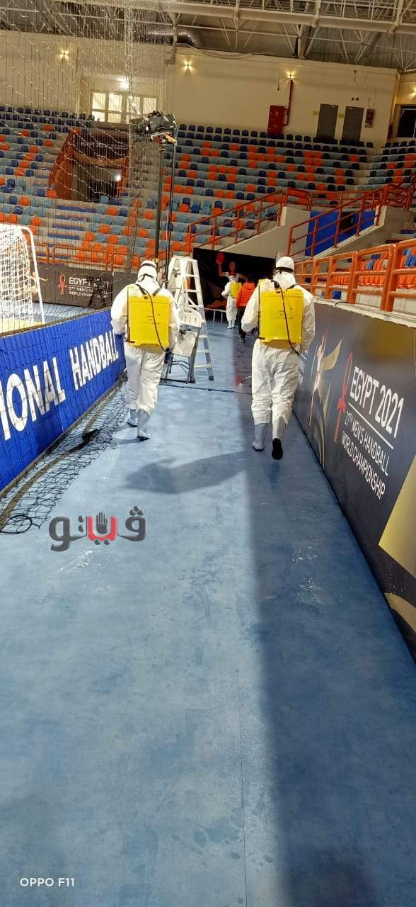 تعقيم وتطهير الصالة المغطاة لاستقبال أولى مباريات كأس العالم لليد