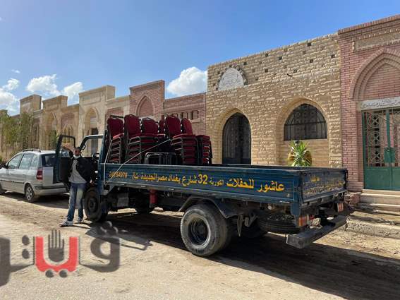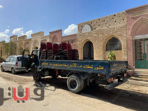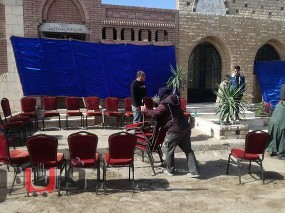 تجهيز سرادق العزاء أمام مقبرة صفوت الشريف لاستقبال المعزين..فيديو وصور