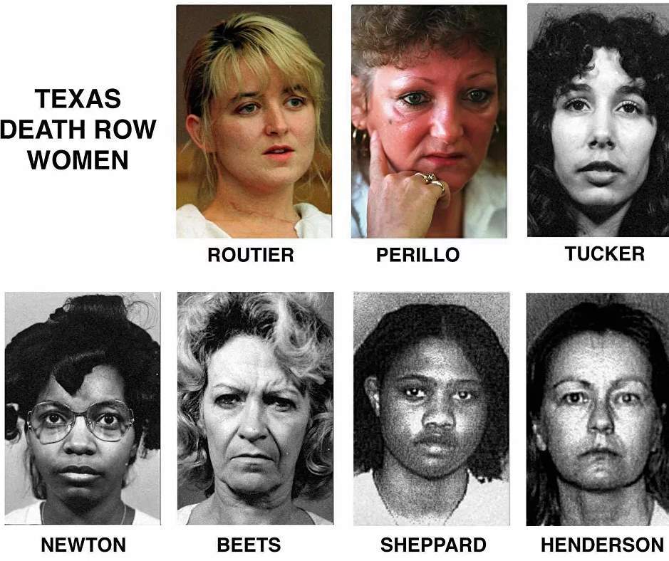 يوجد في ولاية تكساس سبع نساء محكوم عليهن بالإعدام في وحدة "ماونتن فيو" التابعة لإدارة العدالة الجنائية في تكساس، في جيتسفيل، تكساس.