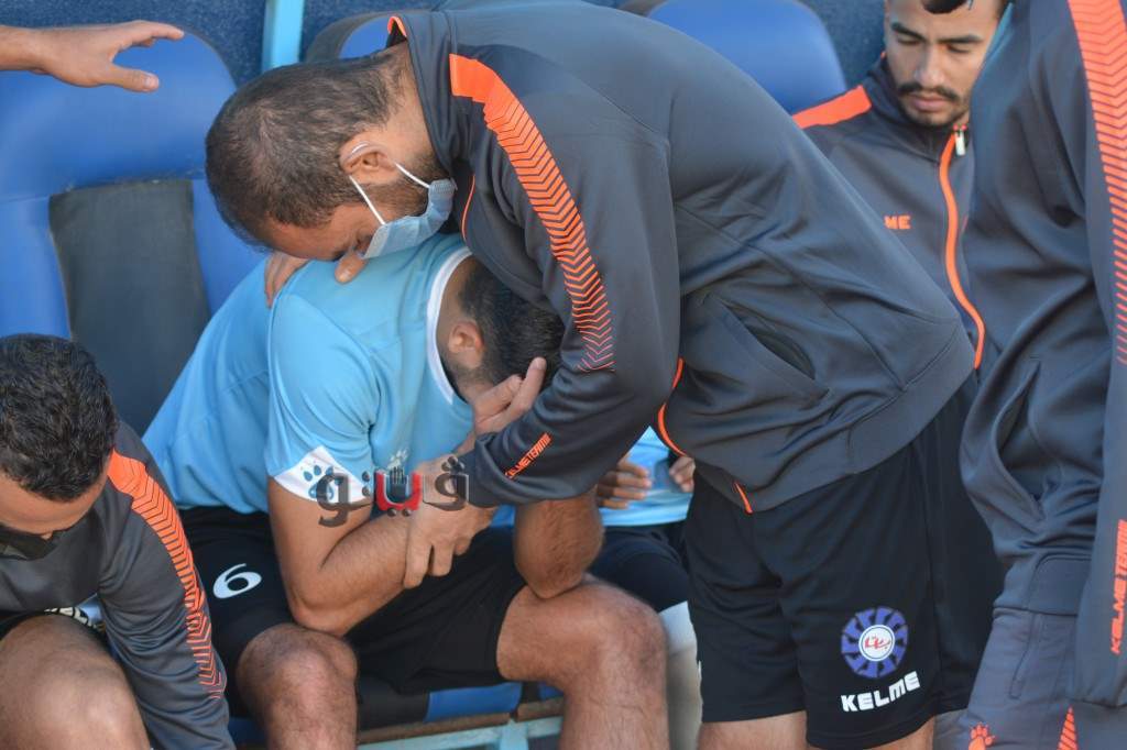 نوبة بكاء لمدافع المحلة عقب إصابته في مباراة أسوان | صور