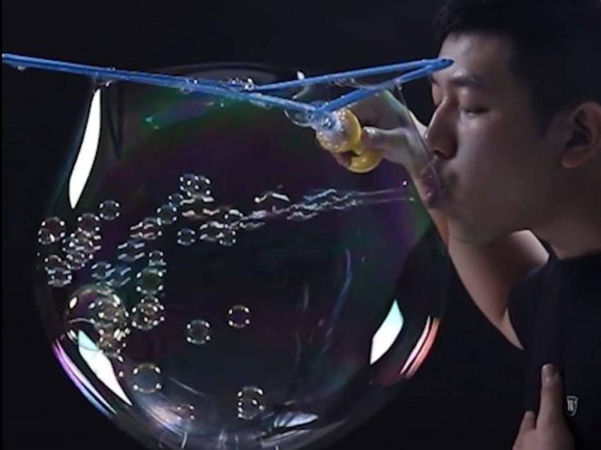دخل مواطن تايواني موسوعة جينيس للأرقام القياسية بعد أن نجح في "نفخ" 783 فقاعة داخل فقاعة أكبر من دون أن تنفجر.