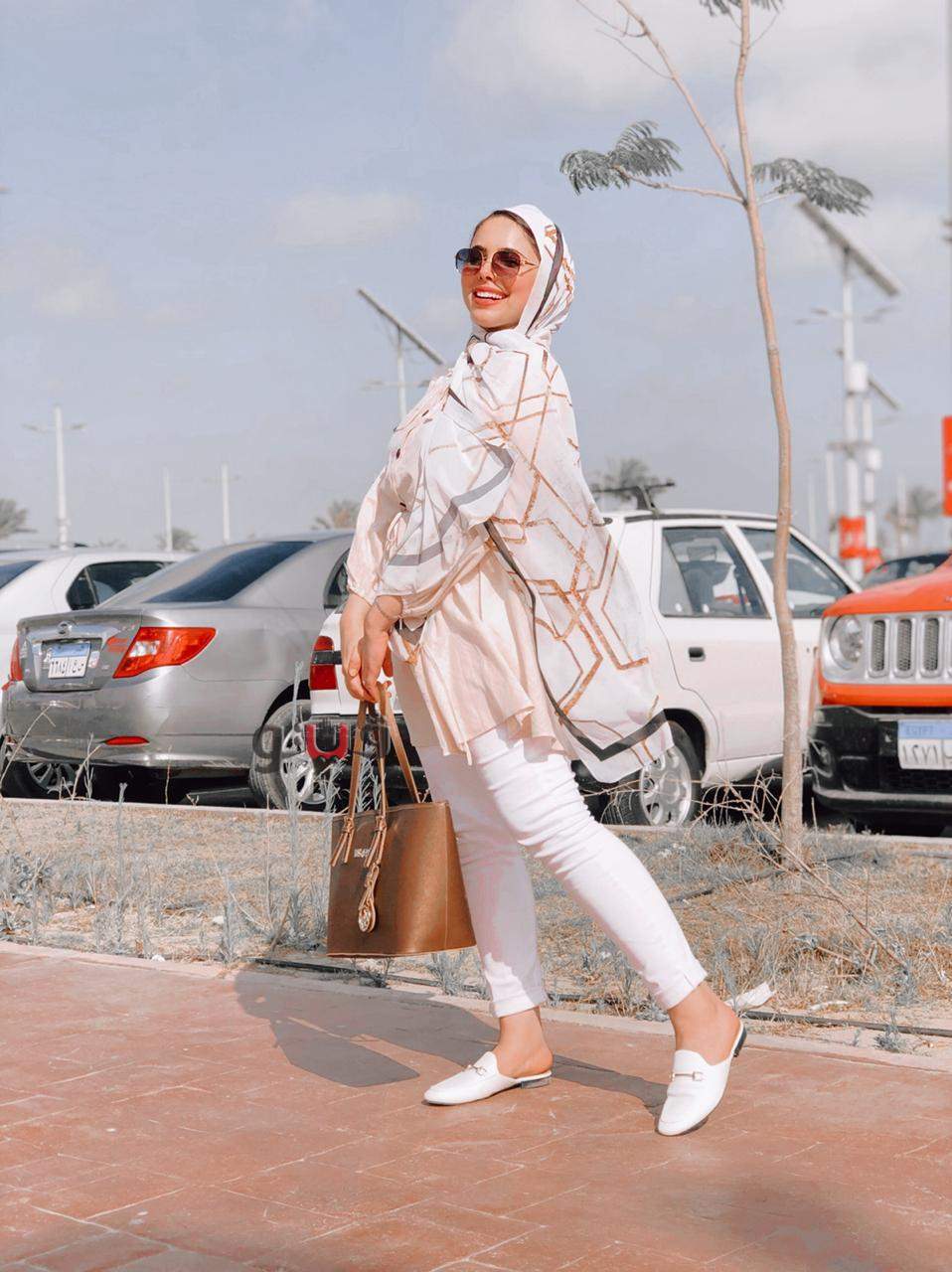 رابعاً و اخيراً هو اختيار الحجاب المناسب مع الحذاء و الحقيبة، من الضروري تنسيق تلك المثلث معاً حتي وان لم يكن بنفس درجات باقي الملابس المُختارة فإختلاف تلك القطع و تنسيق الألوان المُتطابقة الخاصة بهم من المؤكد أنها ستكون إطلالتك المميزة، و فيما يلي أبرز الإطلالات التي يُمكن أن تستوحيها لإطلالتك المُحتشمة من خلال أفكار قدمتها الفاشون بلوجر مي بسيوني لتجددي بها إطلالتك وإليكِ الصور.