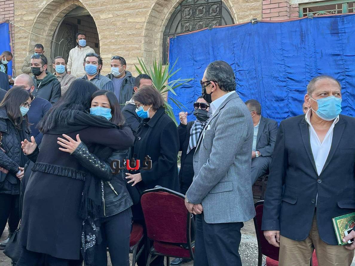 وحرصت إحدى السيدات على مواساة زوجة الشريف وتقبيل يديها ورأس حفيدته أثناء استقبال المعزين أمام المقابر.