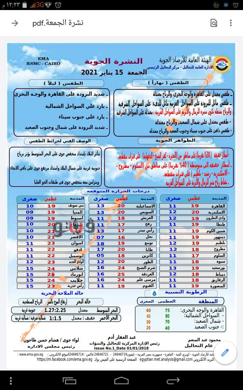 وفيما يلى بيان بدرجات الحرارة: