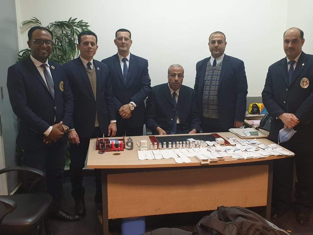 وبالعرض على رفعت صدقى نائب مدير الإدارة قرر تشكيل لجنة لتفتيش أمتعة الراكب الشخصية وتفتيشها ذاتيا من حسام الشافعي مأمور الضبط تحت إشراف أمير مطر مدير الحركة، فلم يتبين وجود شيء داخل حقائبه وتبين وجود 15 حقنة OPDIVO أوبديفو وعلبة حقن Tecentriq لعلاج السرطان و22 شريط أقراص ريلوتيك لعلاج مشاكل الخلايا العصبية مخبأة داخل جيوب الجاكت وكمر البنطلون الذي يرتديه.