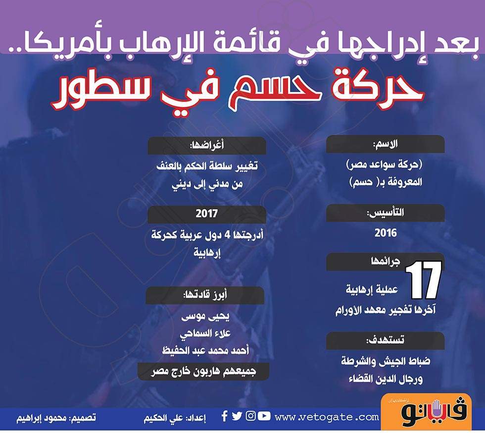 بعد إدراجها في قائمة الإرهاب بأمريكا.. حركة حسم في سطور | إنفوجراف السبت 16/يناير/2021 - 01:37 م 1/16/2021 1:37:25 PM تعبيرية علي الحكيم شارك طباعة 18 حجم الخط شارك طباعة أمريكا حركة حسم جماعة الإخوان