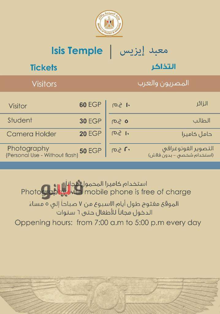 تجدر الإشارة إلى أن الدكتور خالد العناني وزير السياحة والآثار، واللواء أشرف عطية محافظ أسوان، قاما صباح اليوم الجمعة، بافتتاح معبد إيزيس بعد الانتهاء من مشروع ترميمه وتطوير ورفع كفاءة الخدمات السياحية به، لتحسين تجربة الزيارة والخدمات المقدمة.