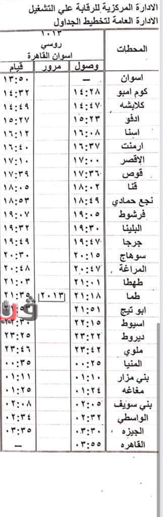 شغلت الهيئة القومية للسكك الحديدية بتشغيل عدد من القطارات الروسى الجديدة، وحصلت "فيتو" على قائمة بمواعيد القطارات المذكورة وخطوط سيرها.