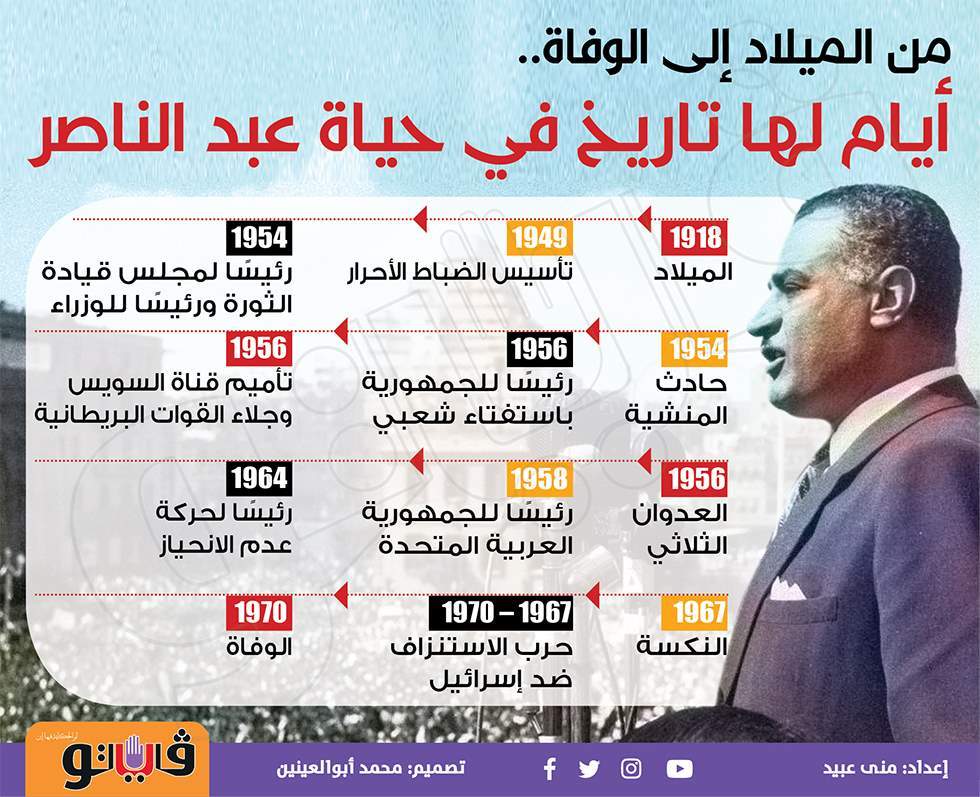 من الميلاد إلى الوفاة.. أيام لها تاريخ في حياة عبد الناصر | إنفوجراف الجمعة 15/يناير/2021 - 08:31 م 1/15/2021 8:31:12 PM جمال عبد الناصر شارك طباعة 18 حجم الخط شارك طباعة عبد الناصر جمال عبد الناصر ذكري ميلاد جمال عبد الناصر