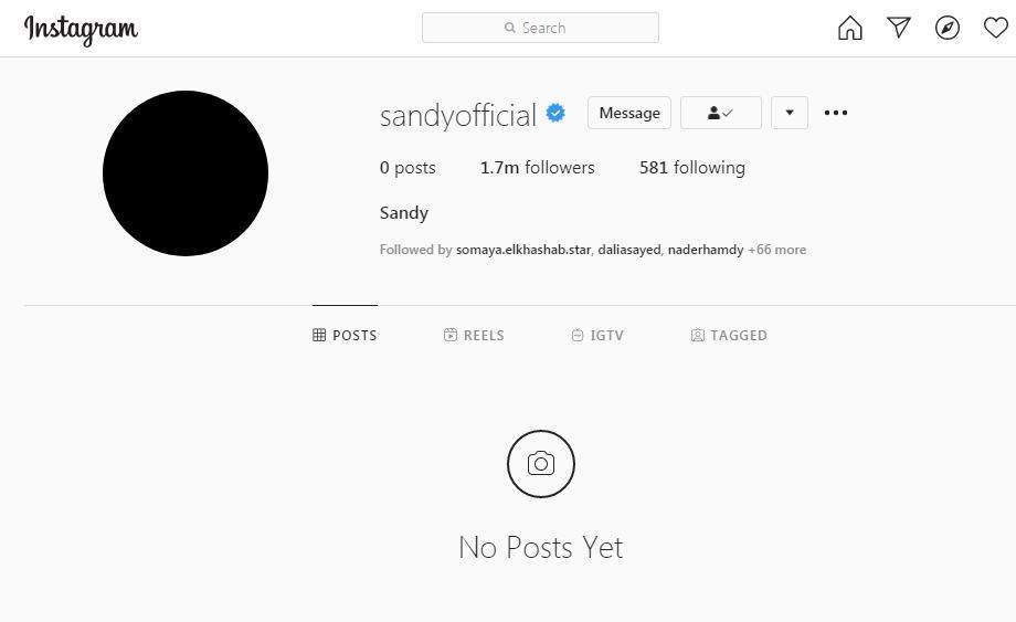 فاجأت المطربة ساندي جمهورها، بإغلاق حسابها الرسمي بموقع الصور والفيديوهات "إنستجرام"، دون ذكر أسباب لذلك، على حساباتها الأخرى بالسوشيال ميديا.