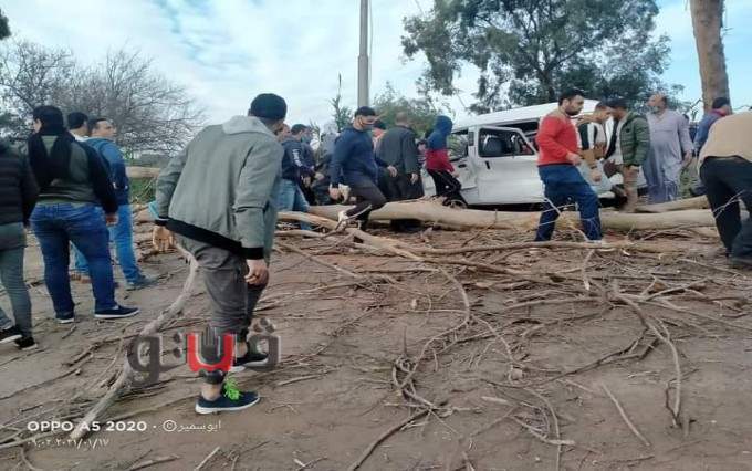 مصرع سيدة وإصابة آخرين إثر سقوط شجرة على ميكروباص بطنطا | صور