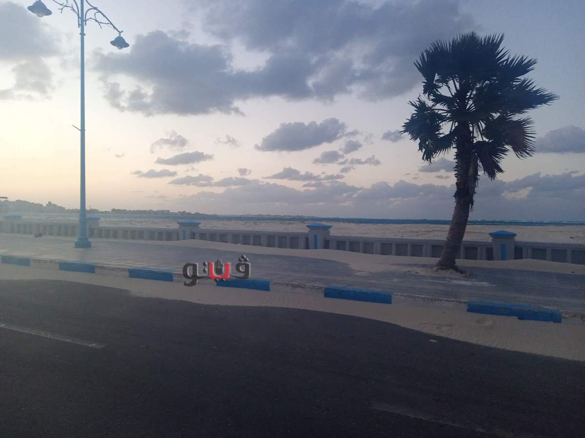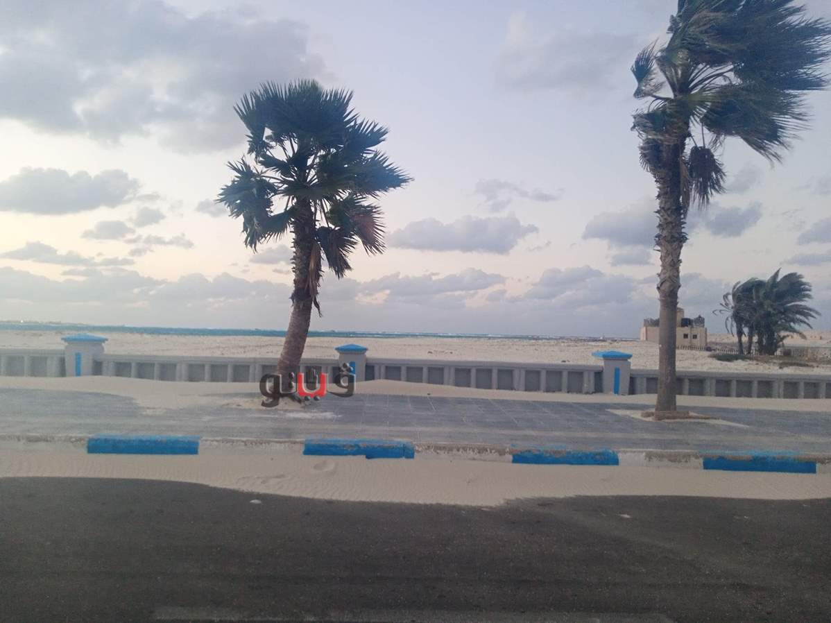 خروج رمال البحر على طريق كورنيش مطروح بسبب الرياح | فيديو وصور