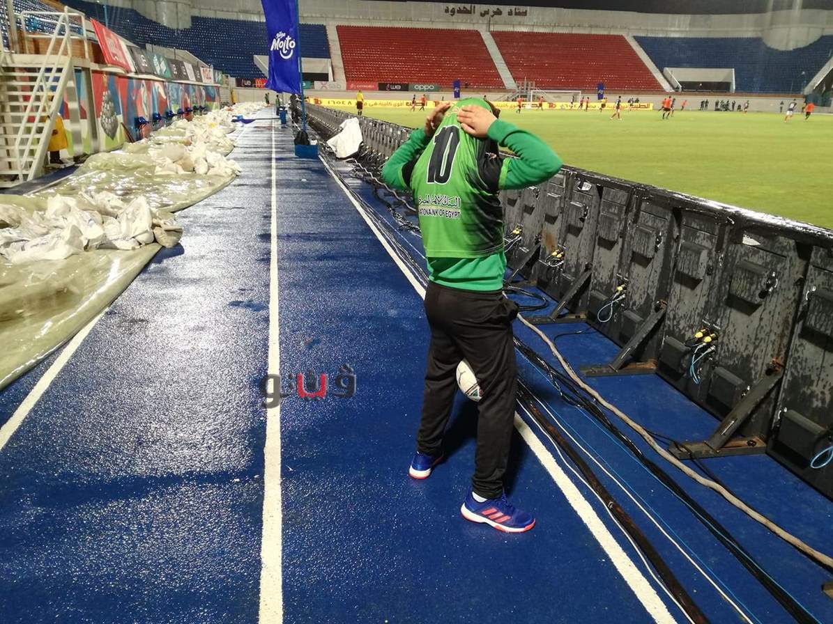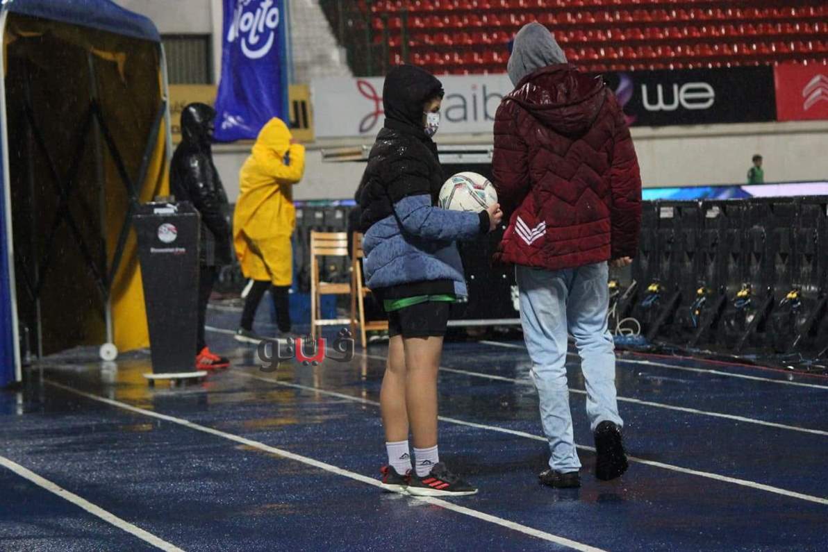 فاجأت الأمطار كلا من في استاد المكس بالإسكندرية خلال مباراة نادي البنك الأهلي والنادي الأهلي، بمن فيهم الأطفال المتواجدين حول ملعب لجمع الكرات.