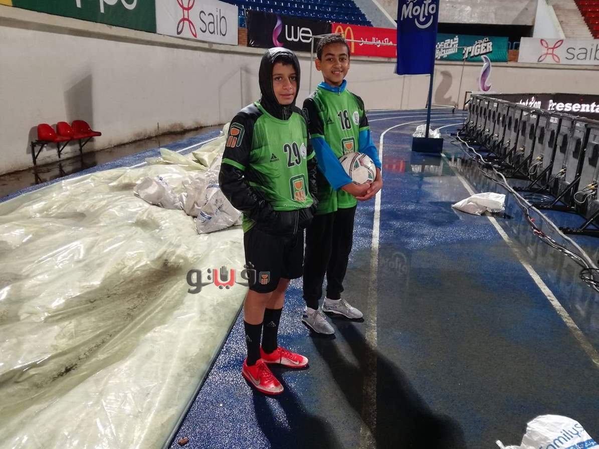 أطفال الملاعب.. الأمطار تداعب أشبال البنك الأهلي في استاد المكس | صور