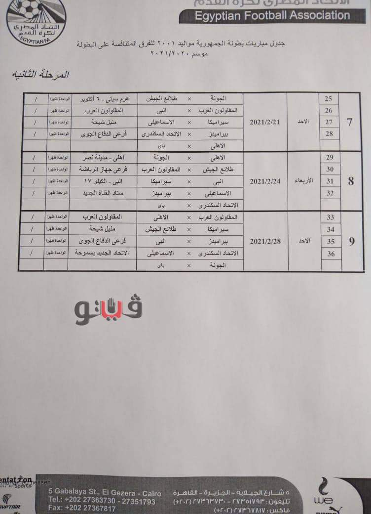 وأجريت قرعة التصفية النهائية لمسابقة دوري الجمهورية للناشئين الموسم الجاري 2020-2021 مؤخرا ، وتقام التصفية النهائية لمواليد 2001 و99 من دور واحد فيما تقام تصفية مواليد 2003 و2006 من دورين.