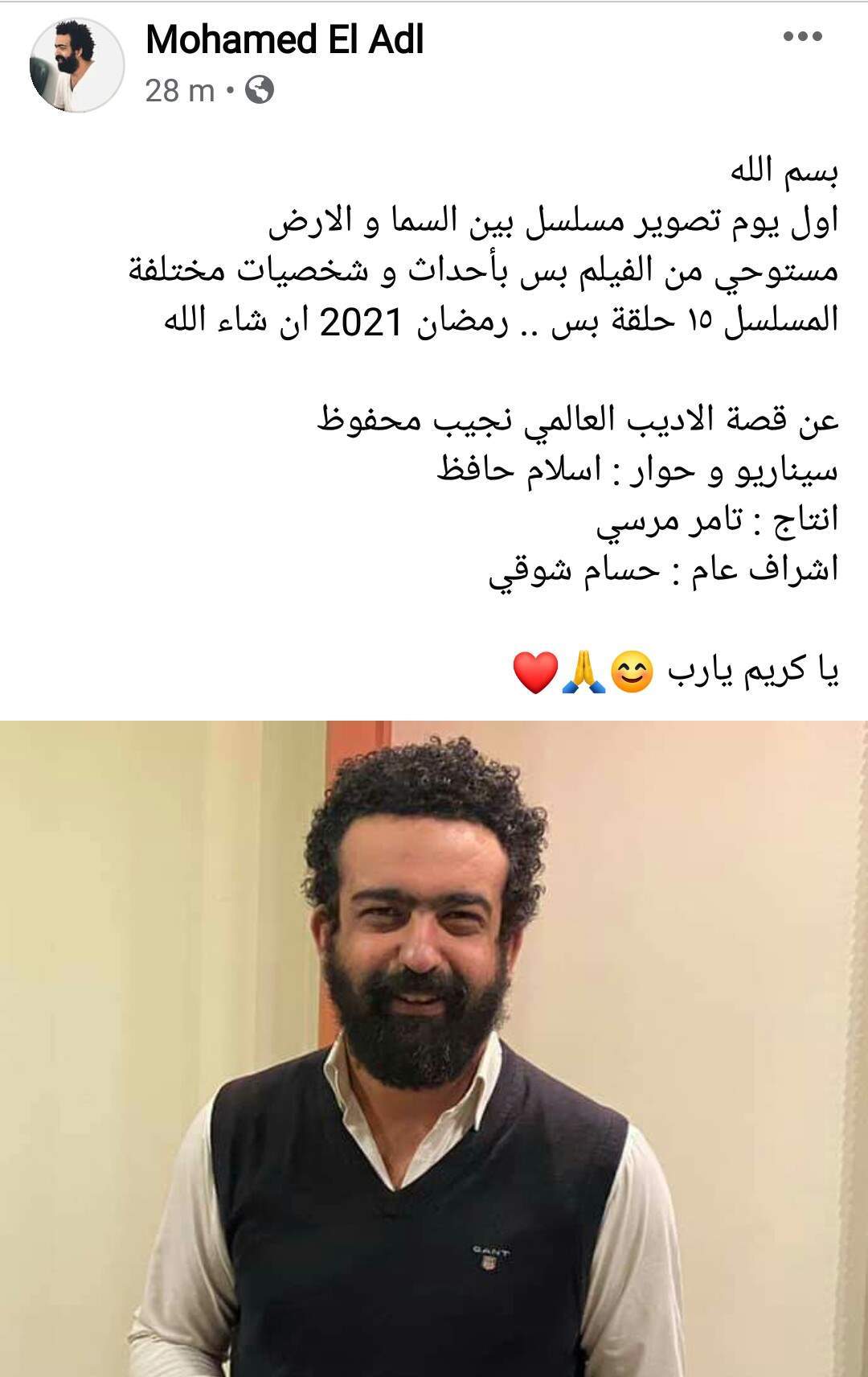 محمد العدل يعلن بدء تصوير مسلسل "بين السما والأرض"