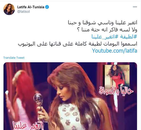 وكتبت الفنانة لطيفة تغريدة على تويتر: "اتغير علينا وناسي شوقنا وحبنا ولا لسة فاكر انه حتة مننا؟ #لطيفة #اتغير_علينا.. اسمعوا ألبومات لطيفة كاملة على قناتها على اليوتيوب".