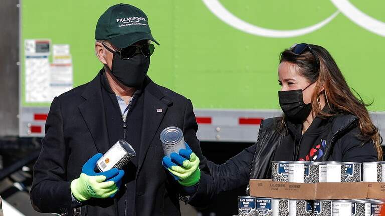 بايدن وزوجته يتطوعان لتعبئة طعام الفقراء في فلاديفيا