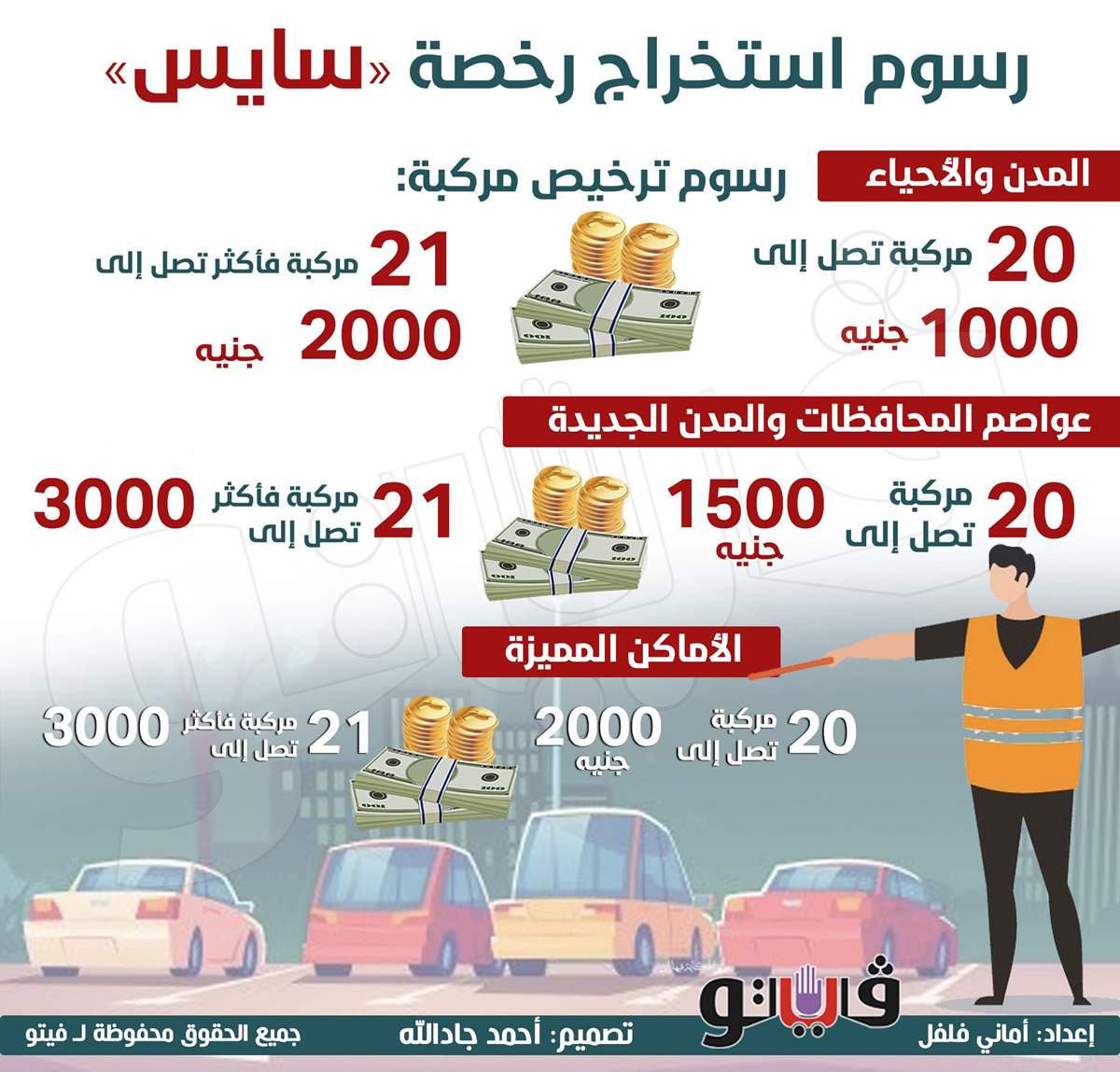 رسوم استخراج رخصة "سايس" | إنفوجراف الثلاثاء 19/يناير/2021 - 10:08 م 1/19/2021 10:08:50 PM رسوم وظيفة السايس شارك طباعة 18 حجم الخط شارك طباعة السايس سايس رسوم وظيفة السايس
