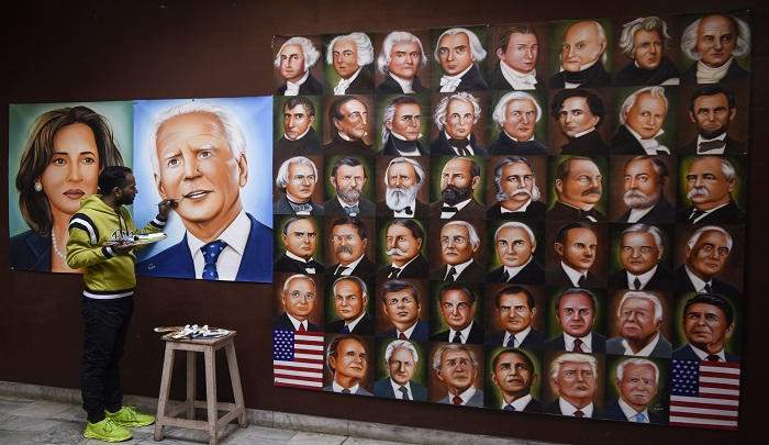 حفل تنصيب الرئيس الأمريكي الجديد جو بايدن، وضع رسام هندي لمساته الأخيرة لانتقال سلمي للسلطة على طريقته الخاصة.