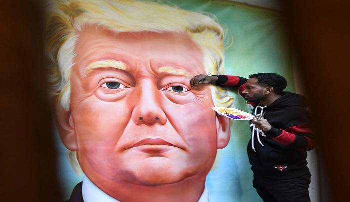 آنذاك استبق الرسام الهندي زيارة الرئيس الأمريكي دونالد ترامب وزوجته ميلانيا إلى أحمد آباد بلوحات لسيد البيت الأبيض
