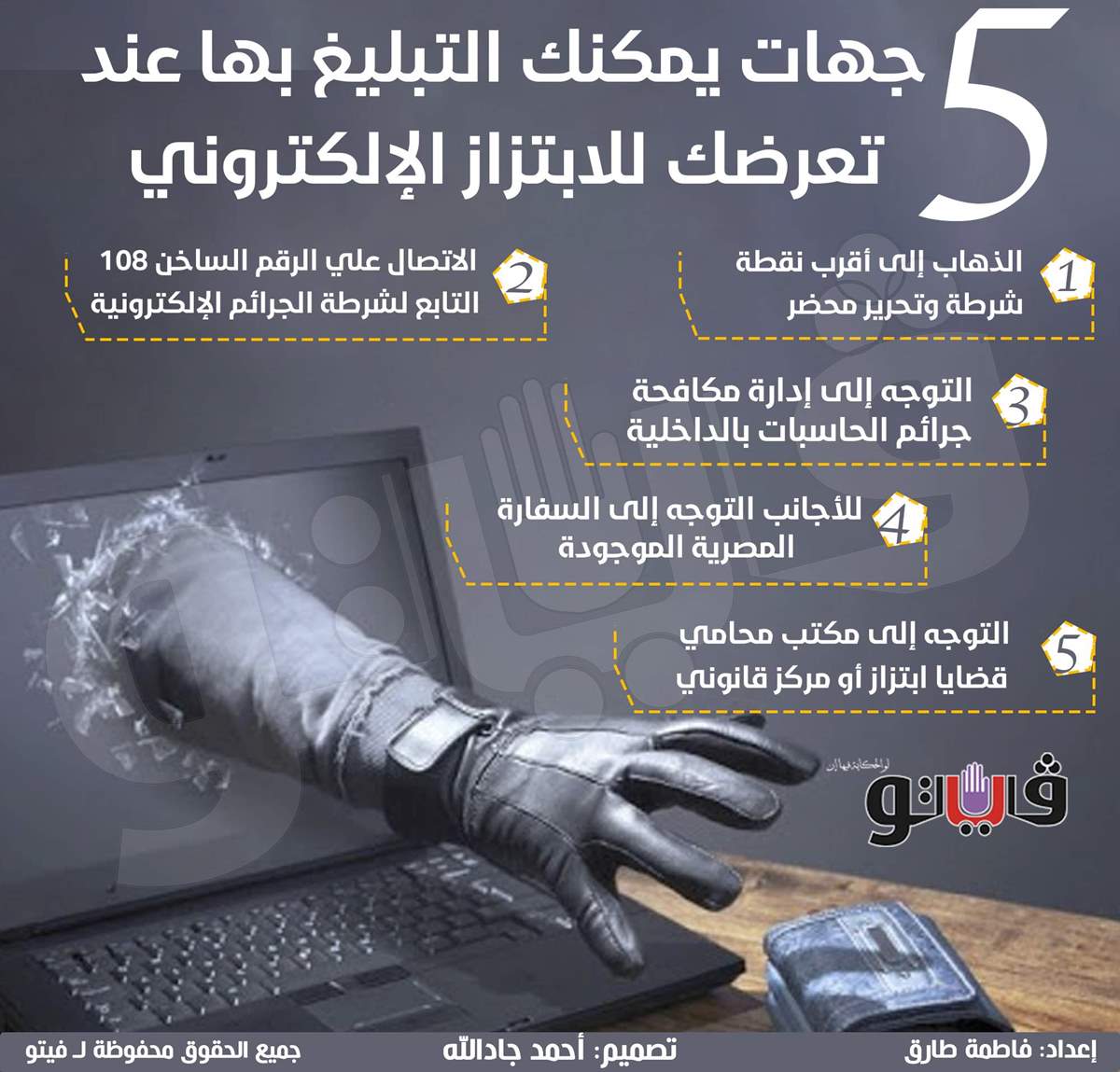 5 جهات يمكنك التبليغ بها عند تعرضك للابتزاز الإلكتروني | إنفوجراف الثلاثاء 19/يناير/2021 - 02:17 م 1/19/2021 2:17:36 PM إبتزاز اليكتروني فاطمة طارق شارك طباعة 18 حجم الخط شارك طباعة الداخلية السفارة المصرية نقطة شرطة الابتزاز الالكتروني الجرائم الالكترونية شرطة الجرائم الالكترونية ادارة مكافحة جرائم الحاسبات قضايا ابتزاز