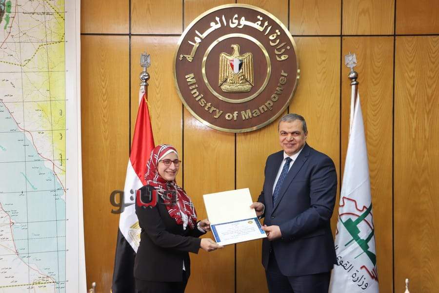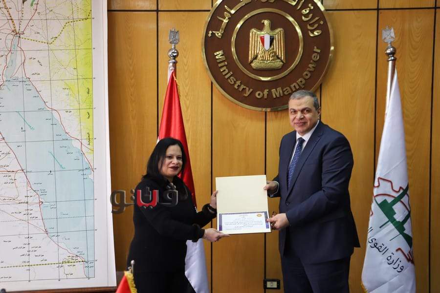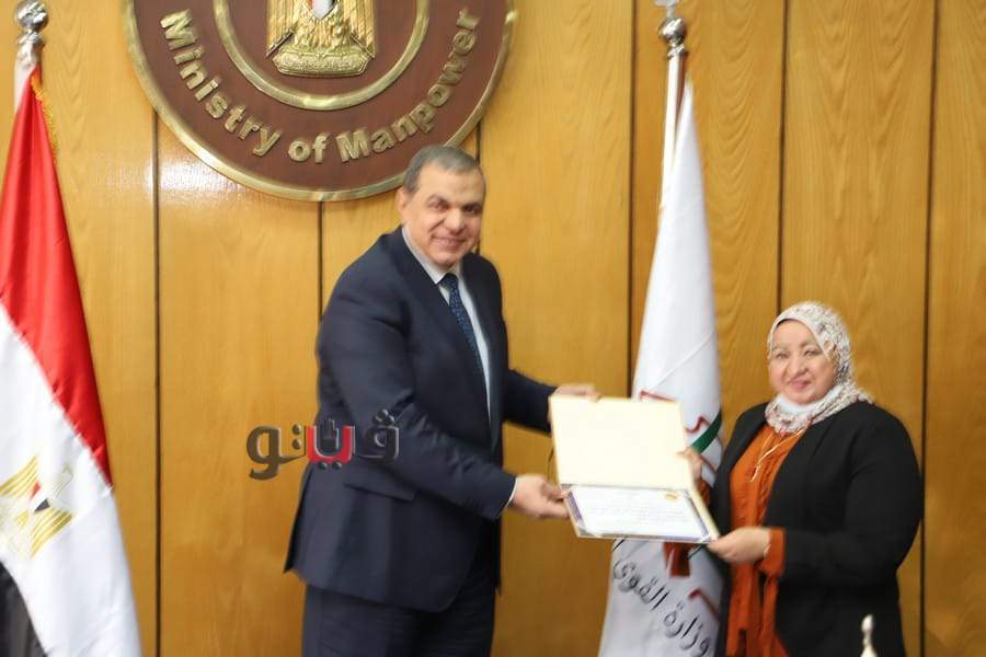 كرم وزير القوى العاملة محمد سعفان الكوادر الشبابية بوزارة القوى العاملة والذين حصلوا علي درجة دبلوم وماجستير إدارة الأعمال من جامعة أسلسكا الفرنسية في مصر.
