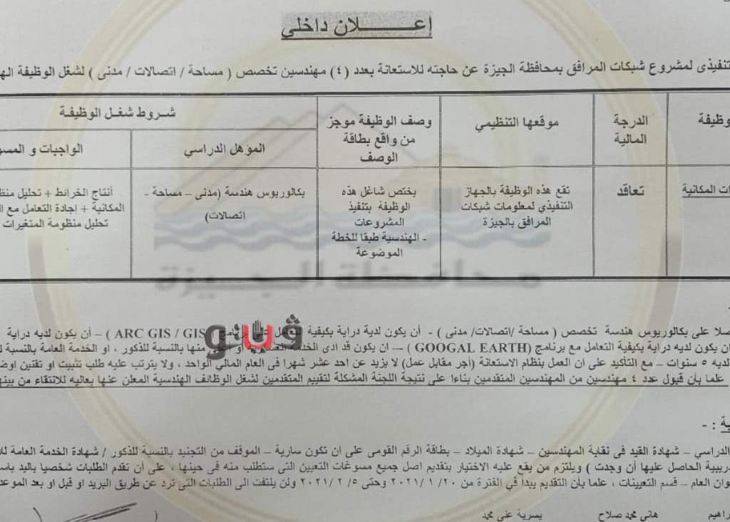 وظائف بجهاز تنفيذي الجيزة لخريجي الهندسة | صور
