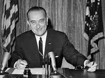 وبعد ساعات على اغتيال كينيدي في دالاس في 22 نوفمبر 1963، تم تنصيب نائبه ليندون جونسون بشكل طارئ رئيسا في الطائرة الرئاسية "اير فورس وان" أثناء توقفها في المطار.
