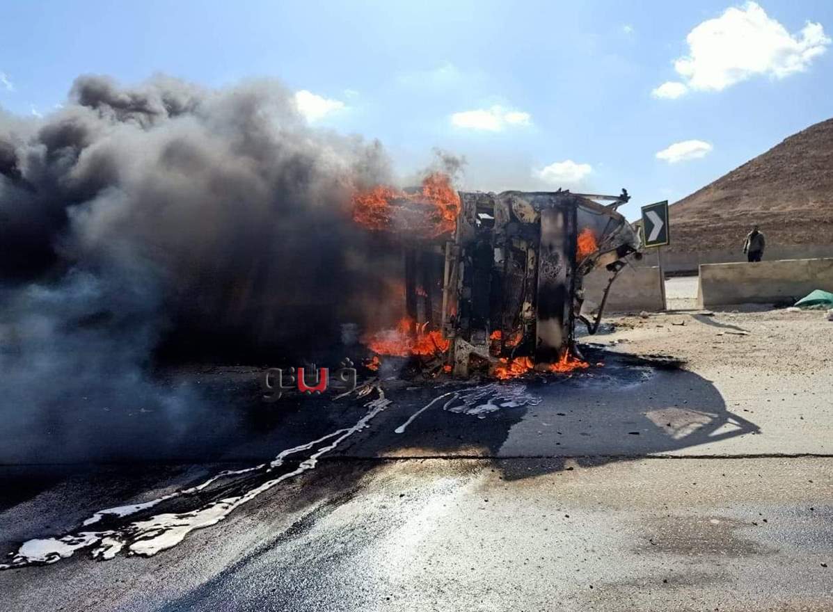 اندلع حريق هائل بسيارة نقل ثقيل عقب انقلابها بطريق العين السخنة بمنطقة القطامية مما أدى إلى توقف حركة المرور ووقوع إصابات، وانتقل رجال المرور إلى المكان لتسيير حركة السيارات.