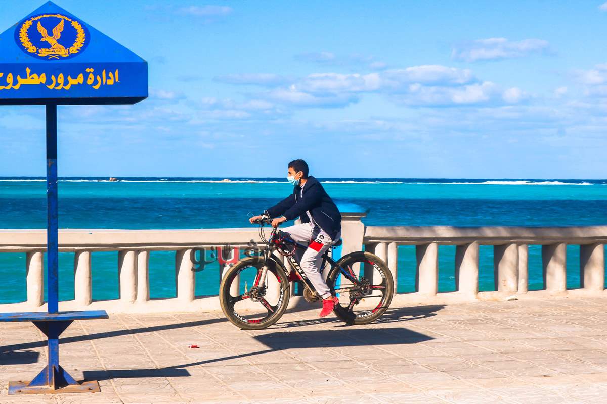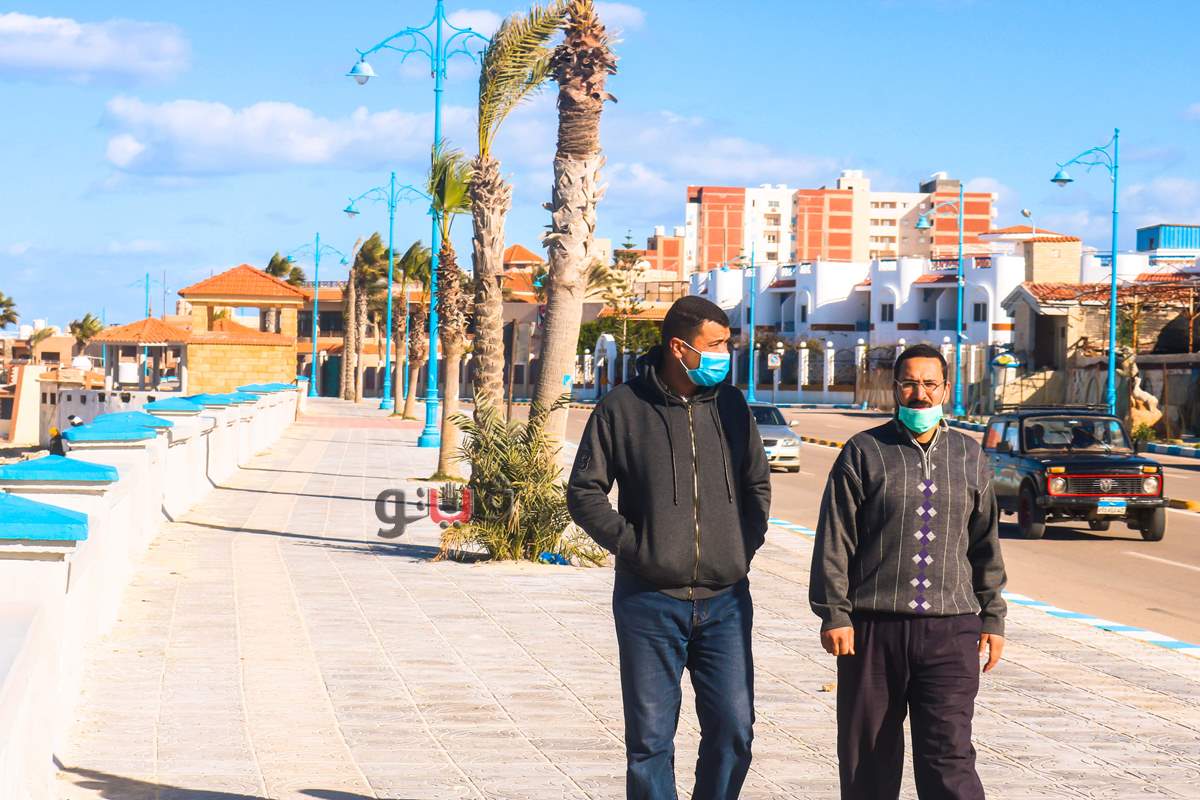 وتوافد المواطنين على كورنيش وشواطئ مدينة مرسي مطروح لممارسة حياتهم الطبيعية وذلك بعد عدة أيام من تقلب أحوال الطقس وخلو الكورنيش من المواطنين.