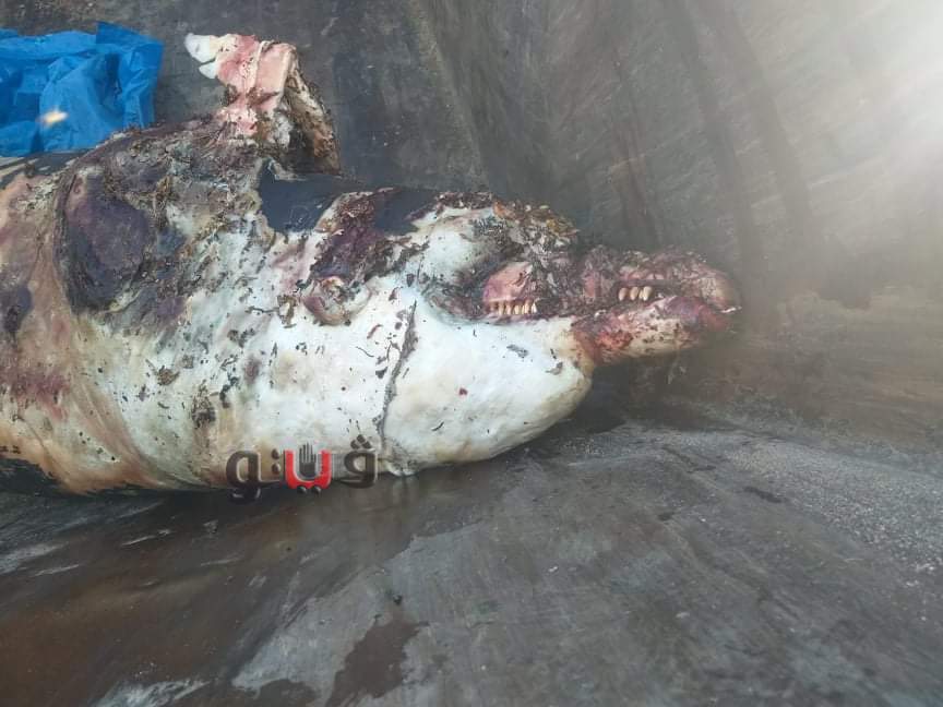 تم التعرف عليه بكونه جثة لأحد الدرافيل النافقة وعلى الفور قام الدكتور محمود عبد الراضي دار مدير الفرع بتشكيل لجنة.