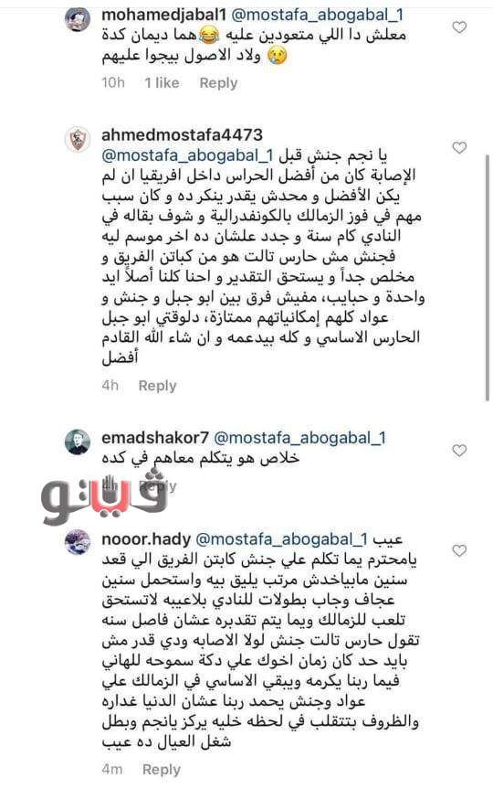 وتلقى أبو جبل بسخرية تعليقات بعض جماهير الزمالك التي كانت توجه له النصائح، وهو ما أثار غضبهم بشكل كبير وبدأوا في توجيه الانتقادات للحارس.