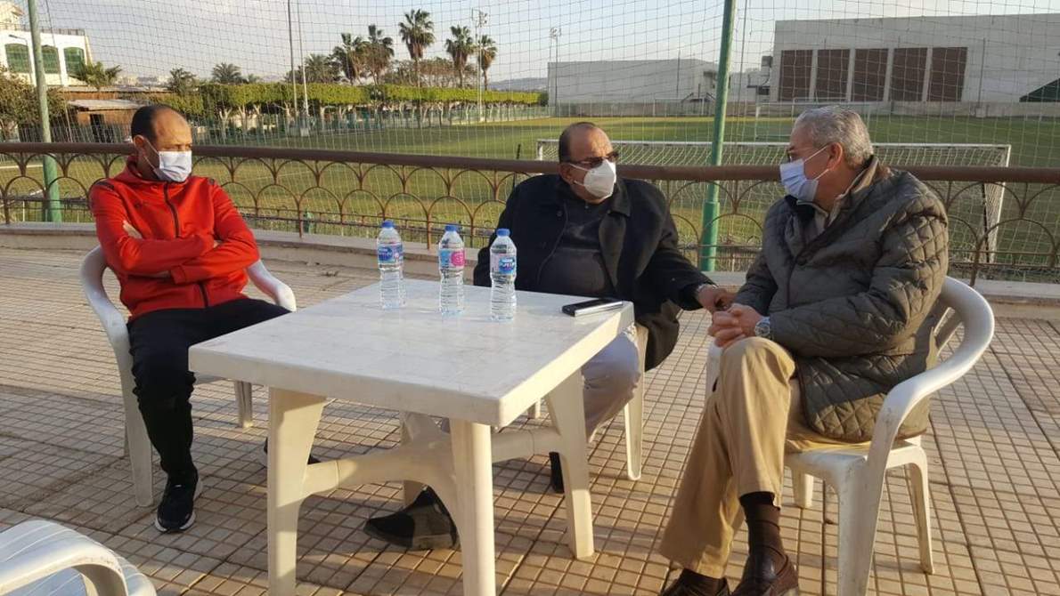 محسن صلاح وعادل فتحي يحفزان لاعبي المقاولون قبل لقاء الأهلي