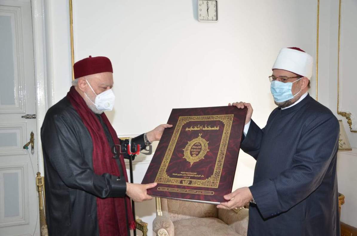 وأهداه وزير الأوقاف نسخة من كتاب الله (عز وجل) تقديرًا لجهوده العلمية والدعوية ، ولا سيما في مجال تجديد الخطاب الديني ومواجهة الفكر المتطرف وتفنيد أباطيل المتطرفين ، معربًا عن سعادته بمواصلة التعاون التام بين وزارة الأوقاف ولجنة الشئون الدينية والأوقاف بمجلس النواب الموقر في دور انعقاده الجديدة .