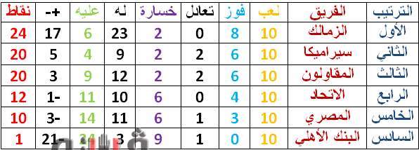 وتصدر فريق الزمالك ، قمة المجموعة الثانية برصيد 24 نقطة ويليه سيراميكا والمقاولون العرب ولكل منهما 20 نقطة .
