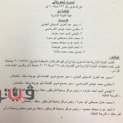 قضت المحكمة بمجازاة كل من سمير عبد العزيز الدسوقي، ومكاوي محمد عوض، مديري مصنع تدوير القمامة السابقين بغرامة تعادل الأجر الأساسي الذي كان يتقاضاها كل منهما في الشهر عند انتهاء خدمته.